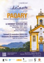 23 novembre 2024 24 novembre 2024 Fribourg | Paqary: « Naissance »: Musique baroque de l’Amerique latine (avec l’orchestre « Le Moment Baroque » et les solistes A. Haug (alto), A. Montandon-Toledo (soprano) et B. Bochud (ténor) | ![]() | Extraits Libretto |